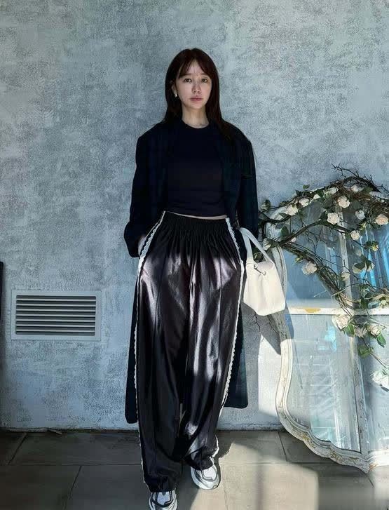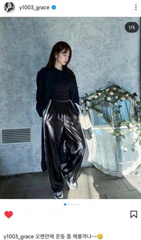 尹恩惠在自己的ins账号上晒出了她的最新穿搭风格照片,并配文表示道:“好久没运动了。”照片中的她穿着黑色紧身上衣搭配黑色宽松运动裤与黑白系的运动鞋,外搭一件深色格仔大衣,看起来十分休闲,很有运动风格,也很酷飒。